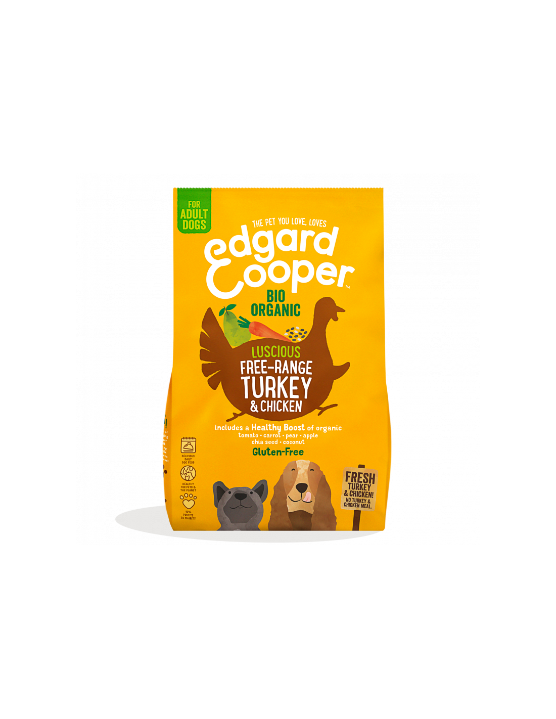 Pienso de Pavo y Pollo de Corral con Zanahoria, Pera y semillas de Chia Eco, Bolsa 0,7 Kgs (Edgar & Cooper)