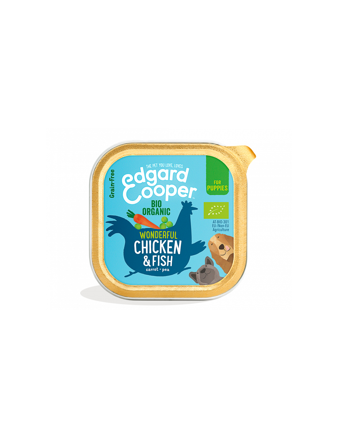 Tarrina para Perro Cachorro de Pollo y Pescado con Zanahoria y Guisantes 100 Gr (Edgar & Cooper)