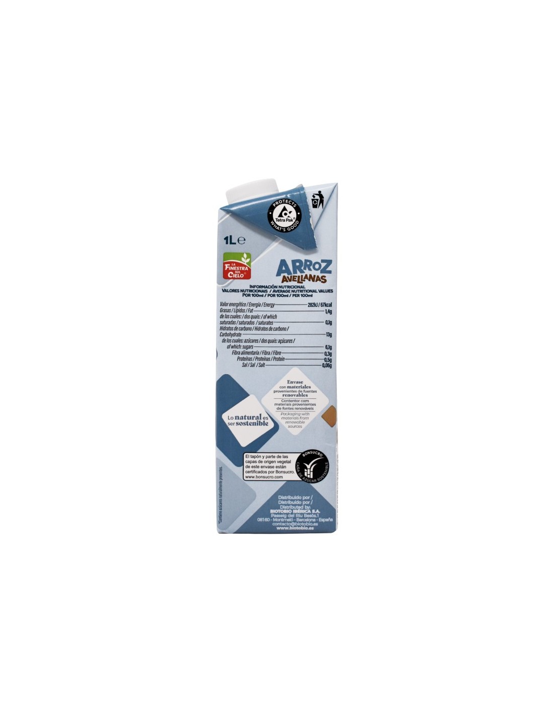 Bebida de Arroz con Avellanas Sin Gluten 1 L (La Finestra Sul Cielo)