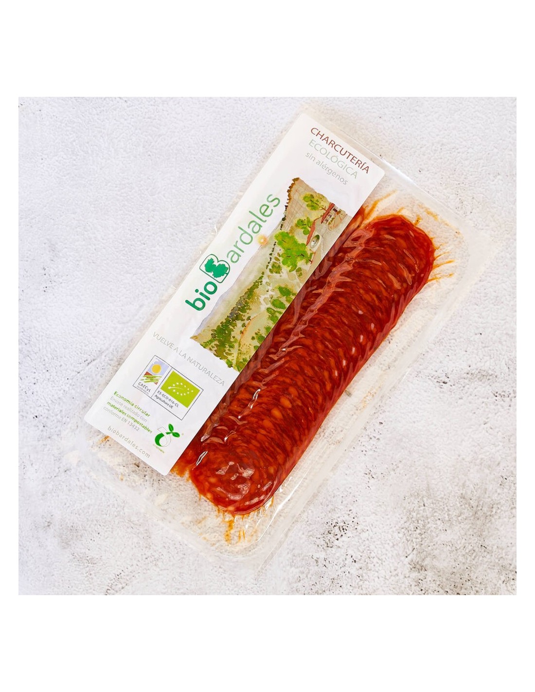 Carne ecológica de cerdo (jamón, panceta y paleta), ajo, pimentón y sal.Curación: 70 días.