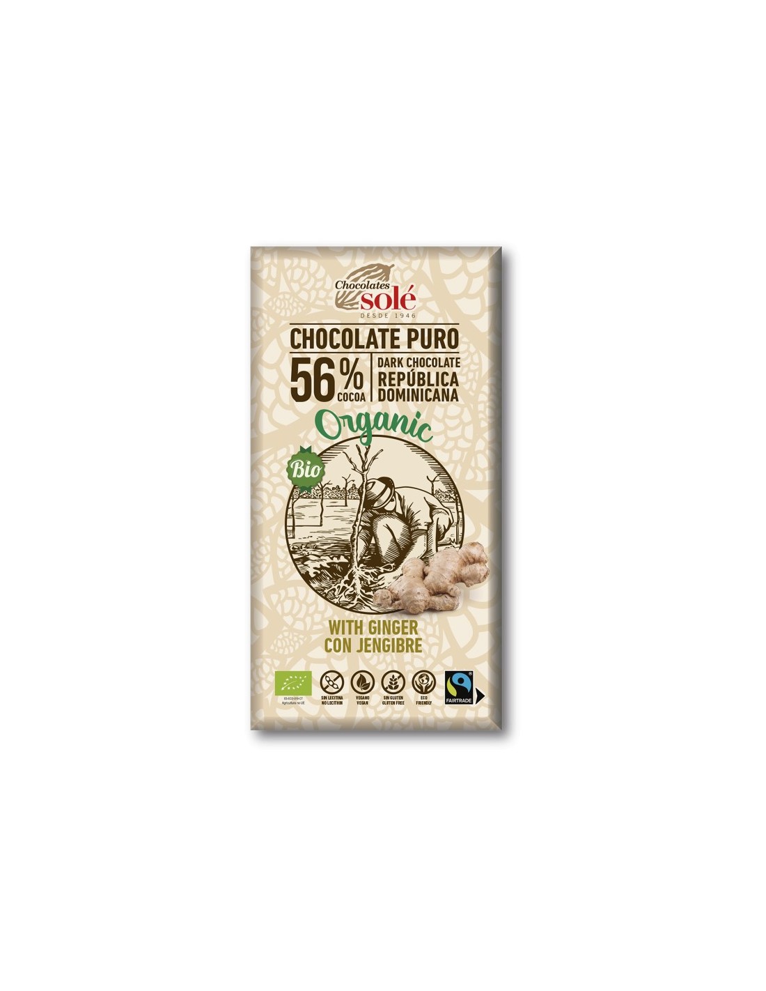 Cacao*, azúcar integral de caña*, manteca de cacao*, jengibre (2%) y vainilla.