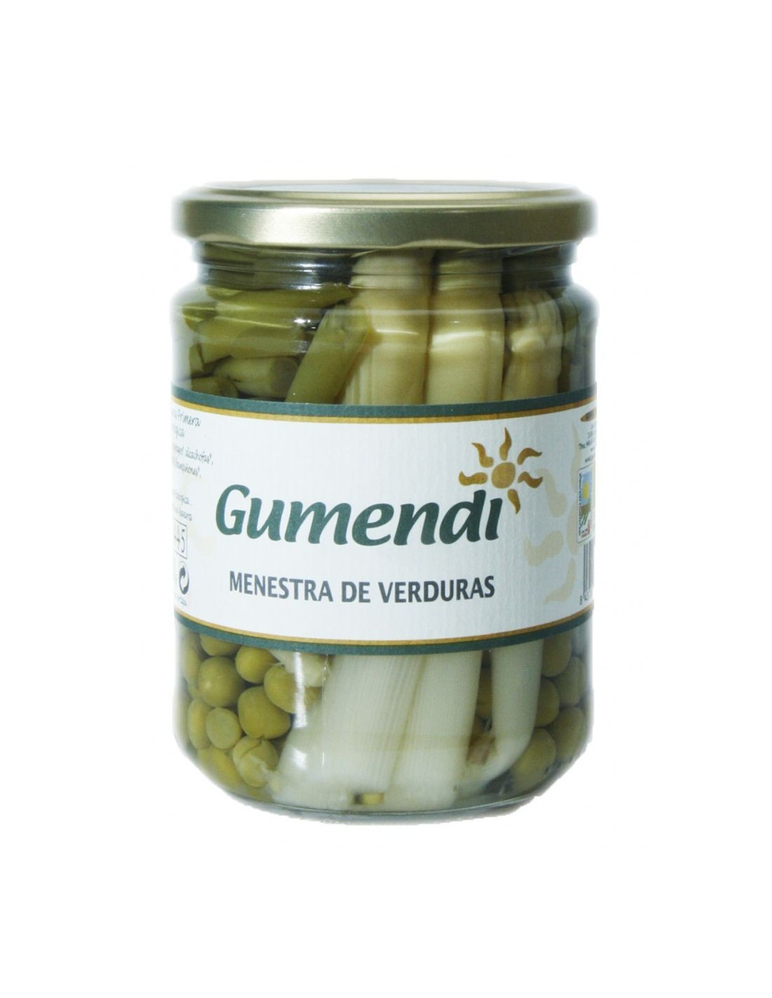 Ingredientes: Guisantes, espárragos, alcachofas, zanahoria, judía verde y champiñones de agricultura ecológica, agua y sal marina.