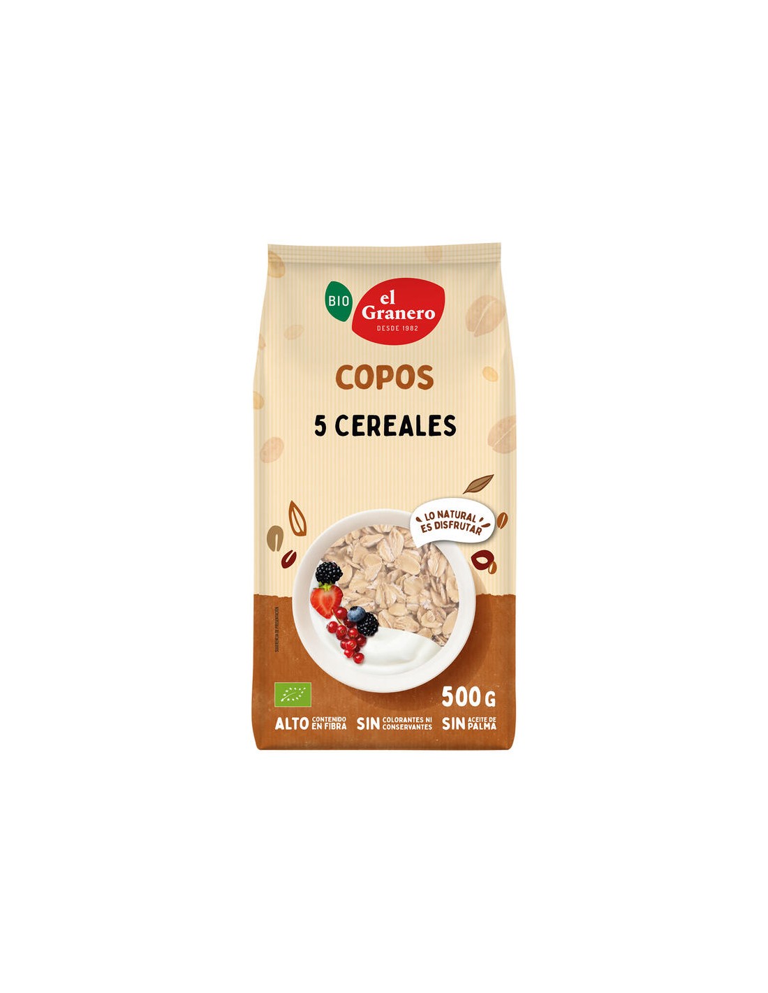 Ingredientes: cereales integrales* (copos de avena*, copos de trigo*, copos de cebada*, copos de centeno*) y copos de maíz tostados* (harina de maíz* 95%, sirope de maíz* 4% y sal). Contiene gluten. Puede contener trazas de sésamo, soja, frutos secos y leche.