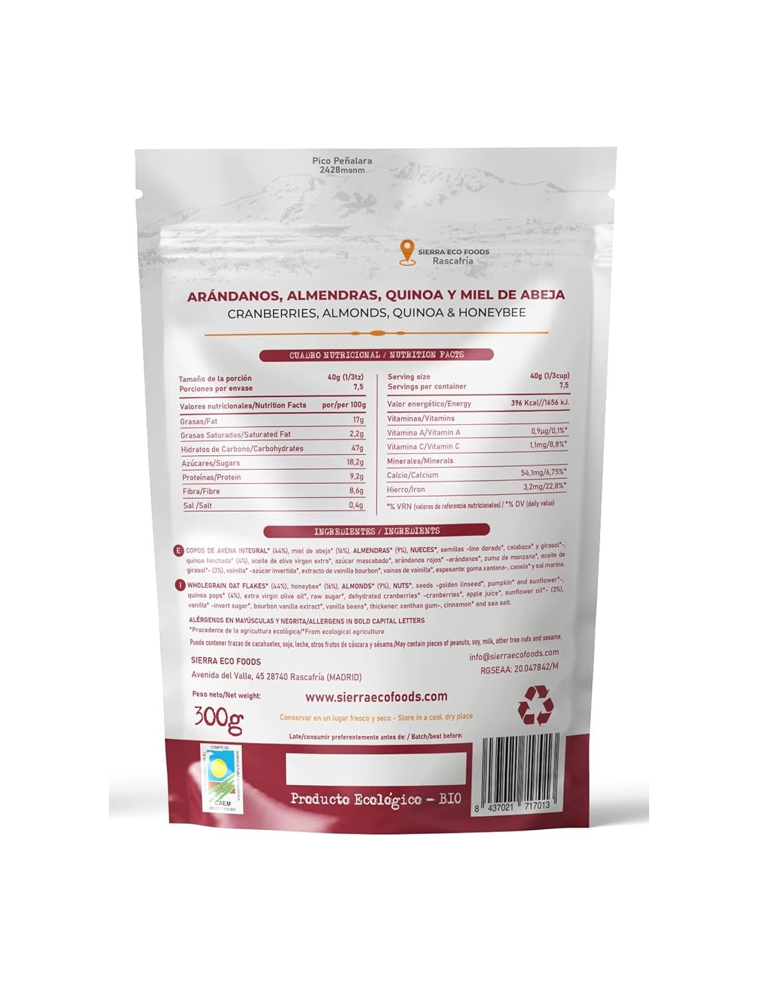 Granola de Arándanos, Almendras y Quinoa 300 Gr (Sierra Ecofoods)