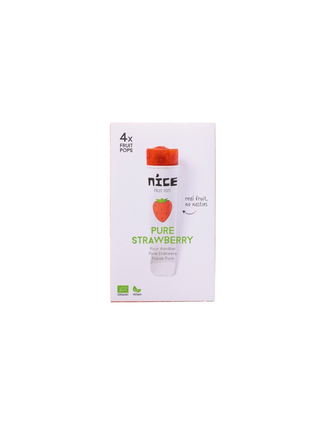 Nice revoluciona el mercado de helados orgánicos con su versión del helado de tubo más famoso. Nos presenta la alternativa bio con fresas, fresas y más fresas, hasta un 70%, un poco de azúcar de caña y zumo de limón. Toda la fruta es recién recogida y congelada de inmediato para conservar todos sus beneficios y sabor. De esta forma llega el 100% de la naturaleza a nuestro helado.