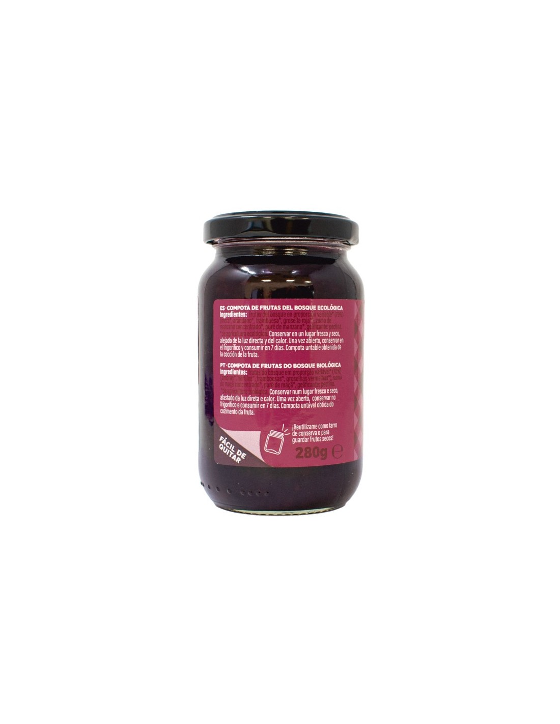 Compota de frutas del bosque procedentes de agricultura ecológica certificada. Obtenida de la cocción de la fruta y su mezcla con concentrado de manzana. Con un mínimo de un 60-70% de la mejor fruta. Compota untable ideal para el desayuno o la merienda. Perfecta también para la elaboración de postres. Sin azúcares añadidos.