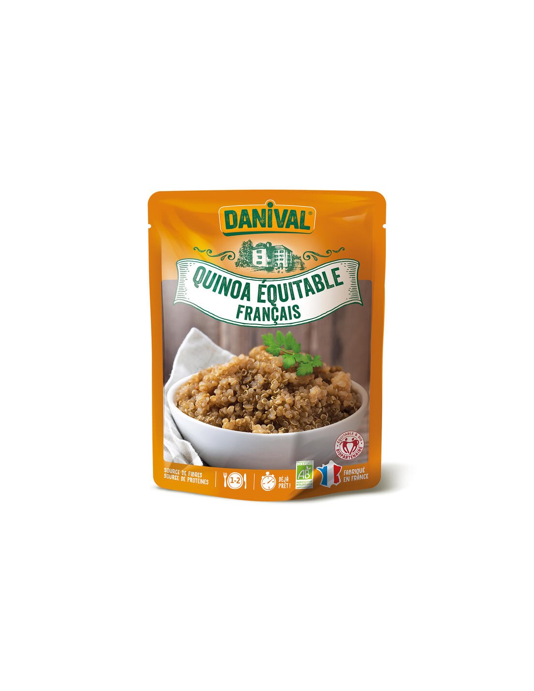 Ingredientes: quinoa** orecocinada de Francia (98.5%), aceite de girasol*, sal marina no refinada del Atlántico. **98% de ingredientes de Comercio Justo.. (*)=De cultivo ecológico.