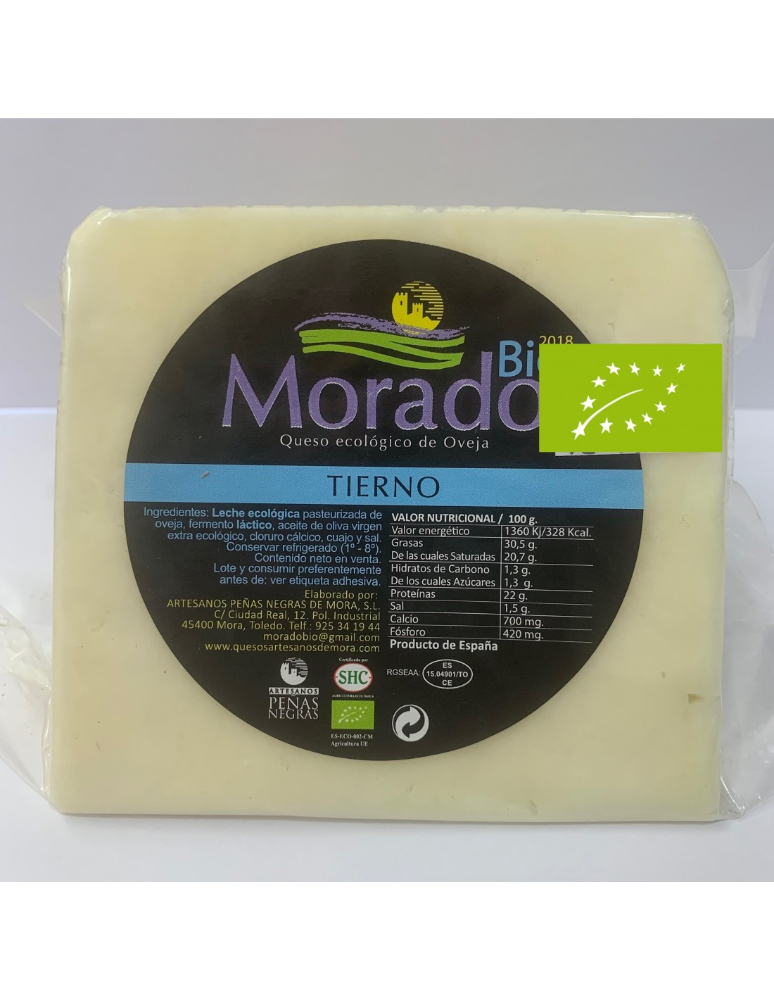 Ingredientes: Leche ecológica pasteurizada de oveja, fermento láctico, aceite de oliva virgen extra ecológico, clorudo cálcico, cuajo y sal.