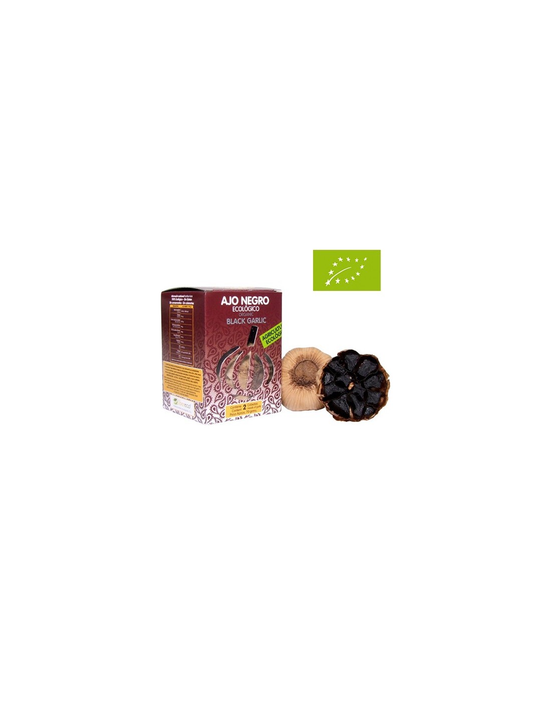 El ajo negro se elabora a partir de ajo fresco bio mediante un proceso de fermentación natural que combina temperatura y humedad controlada durante un largo periodo de tiempo.