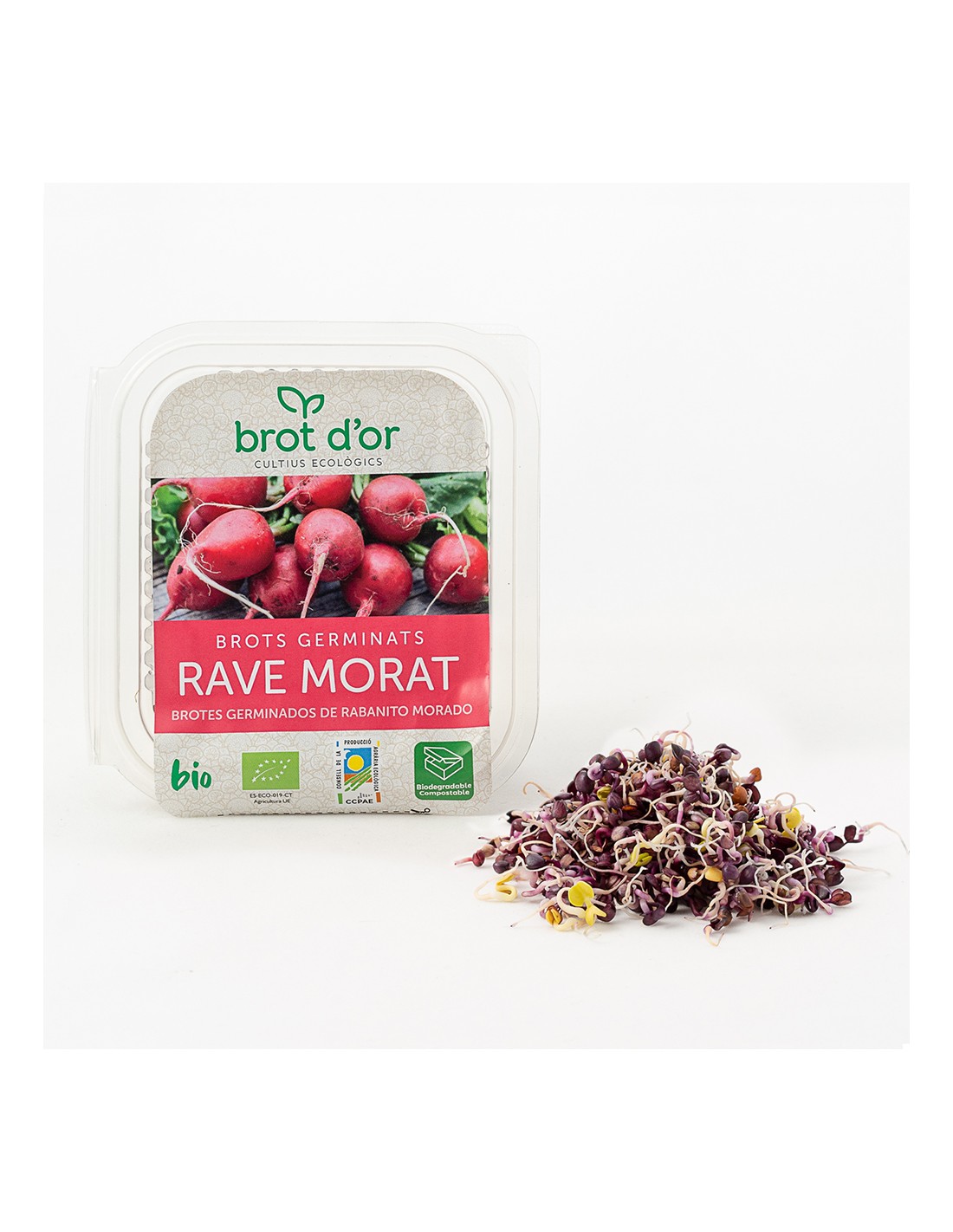 El germinado de rábano morado, con un picante ligeramente más suave que el del rábano blanco de la variedad Daikon, es capaz de animar cualquier ensalada, ya sea por su sabor como por su color.